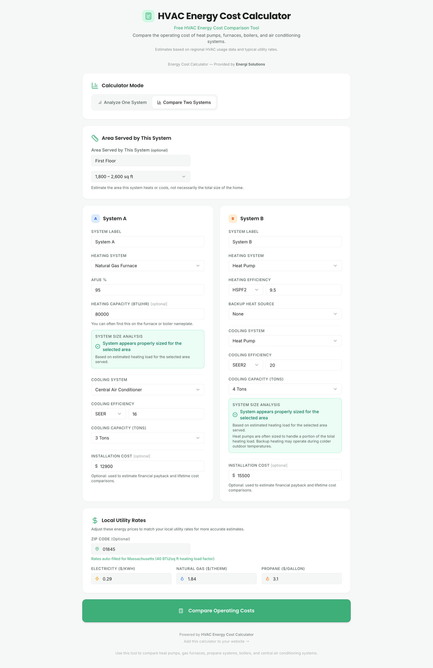 Let homeowners compare real operating costs between systems - and turn that insight into qualified leads for your business.